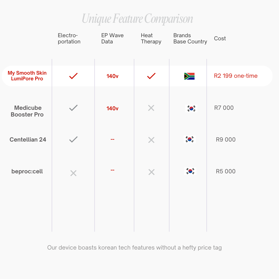 Experience the power of Korean-inspired beauty tech with the New My Smooth Skin LumiPore Skin Booster Pro-your path to radiant, glass-like skin. Using advanced electroporation technology, it boosts serum absorption by 300%, deep into your skin where creams can't reach. Paired with true EMS, sonic vibrations, heat therapy, and LED-you target your skin concerns from every angle for maximized hydration, glow, and firmer youthful-looking skin. Incorporate it into your skincare routine today!